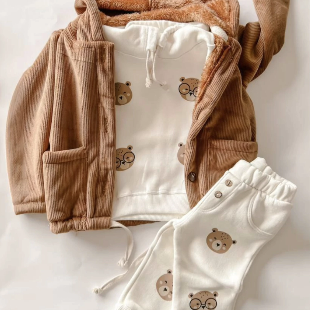 Campera Corderoy beige + Pantalón y buzo de Frisa ¡Tu Mini Siempre a la Moda!